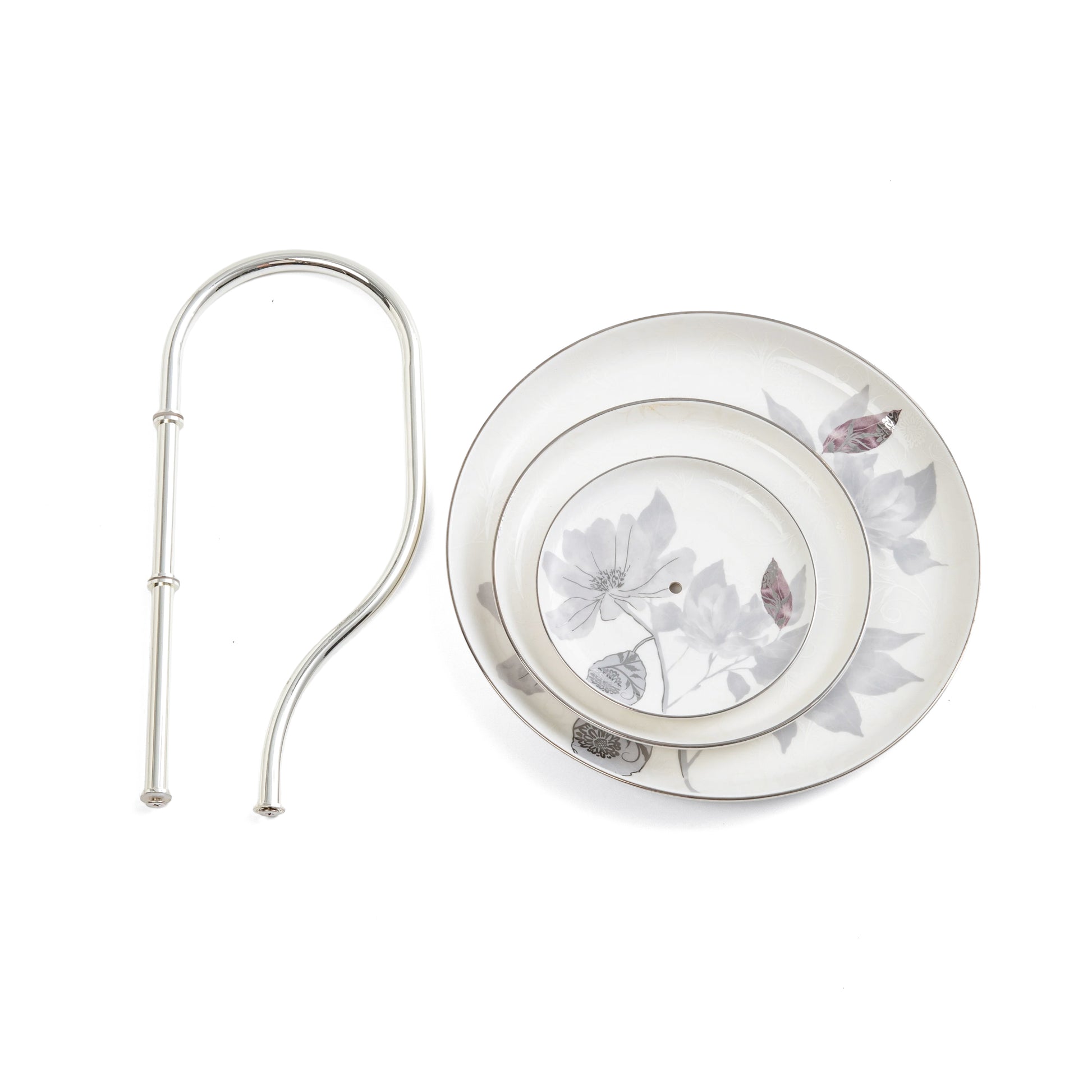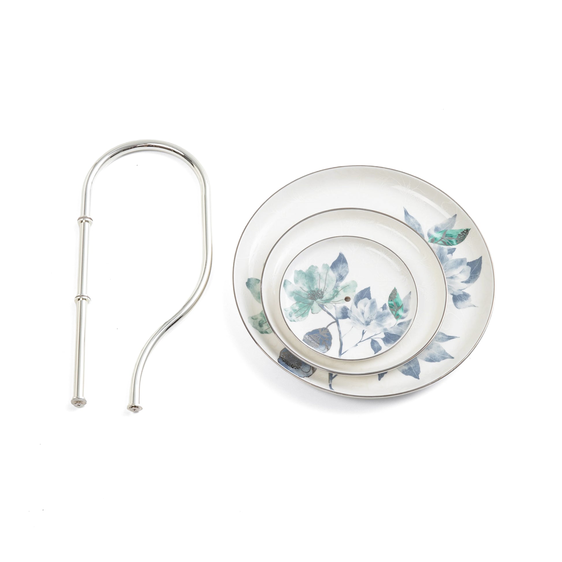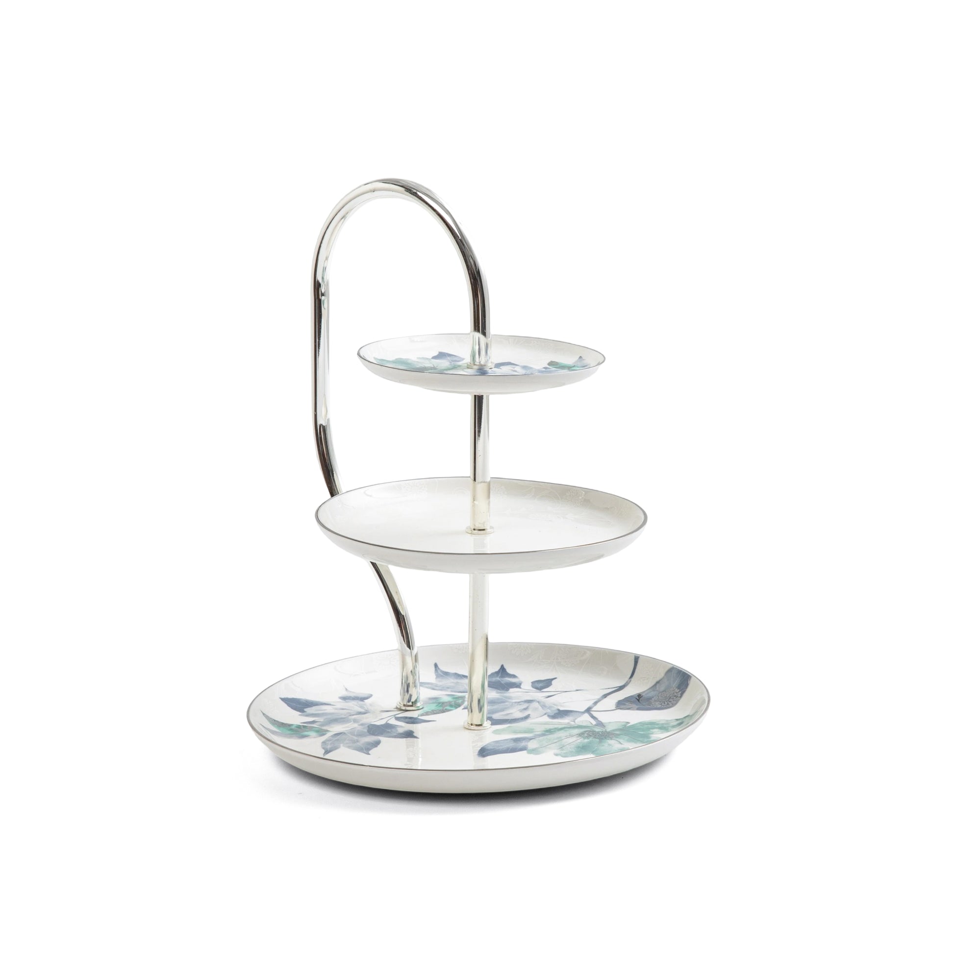 ستاند ضيافة 3 طبقات بورسلان مع حامل معدني