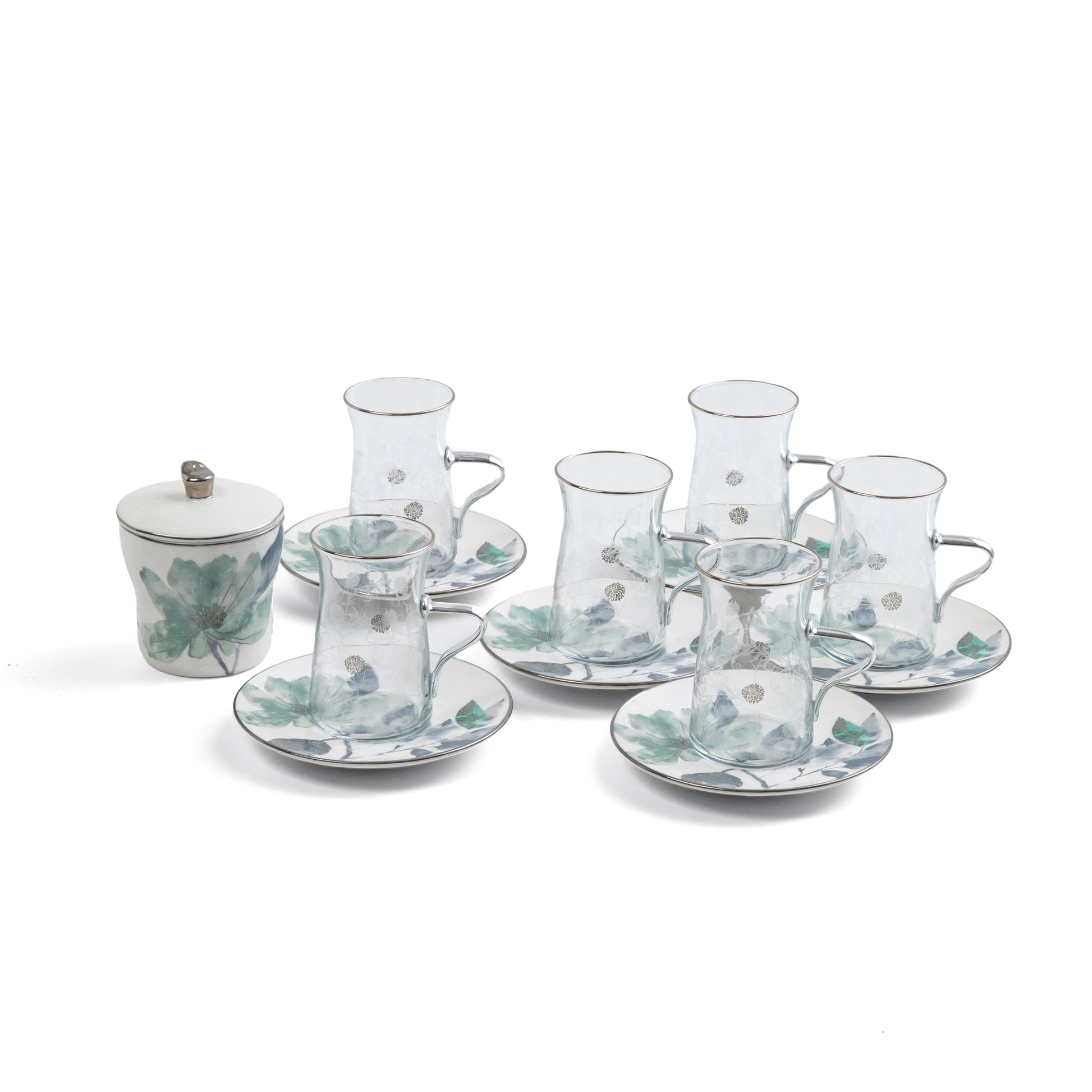 طقم أستكانات الشاي مع سكرية عدد 13 قطعة