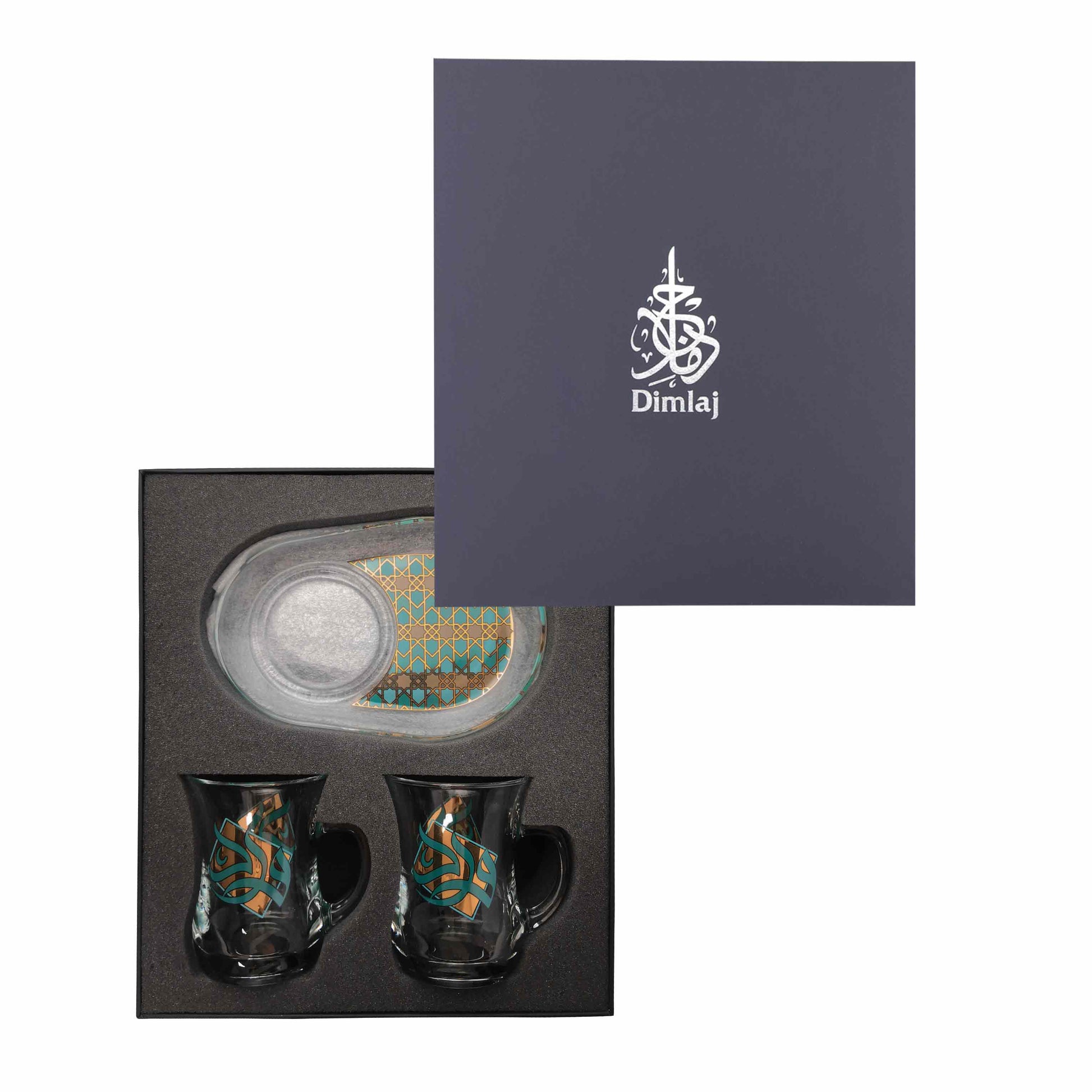 طقم اشتكانة شاي مع صحن زجاج فاخر عدد 2 Dimlaj