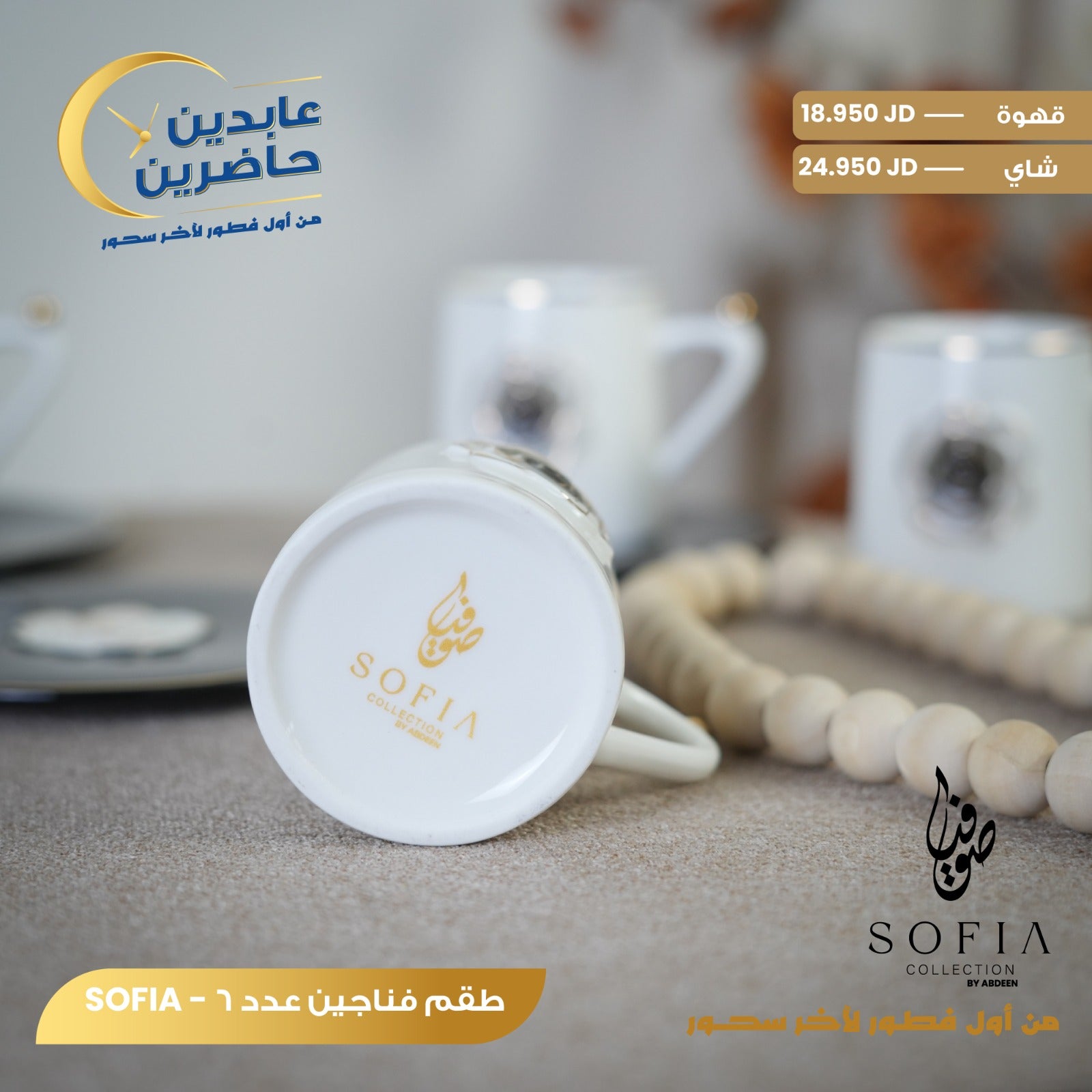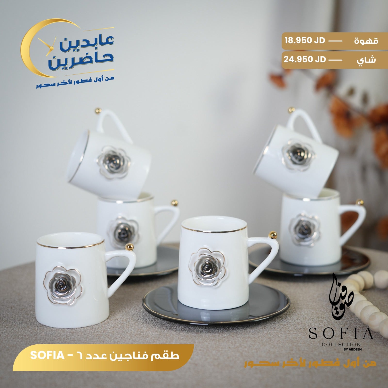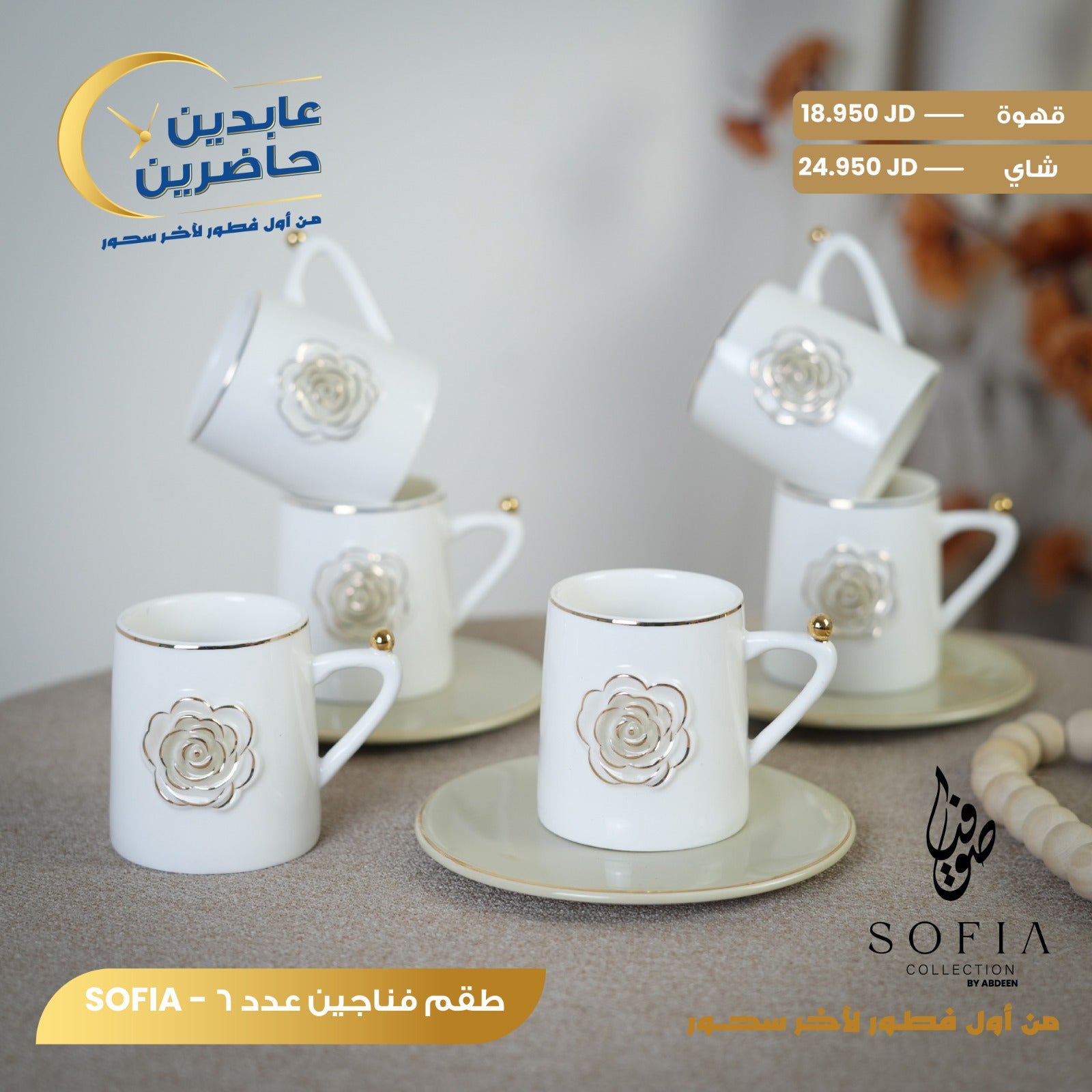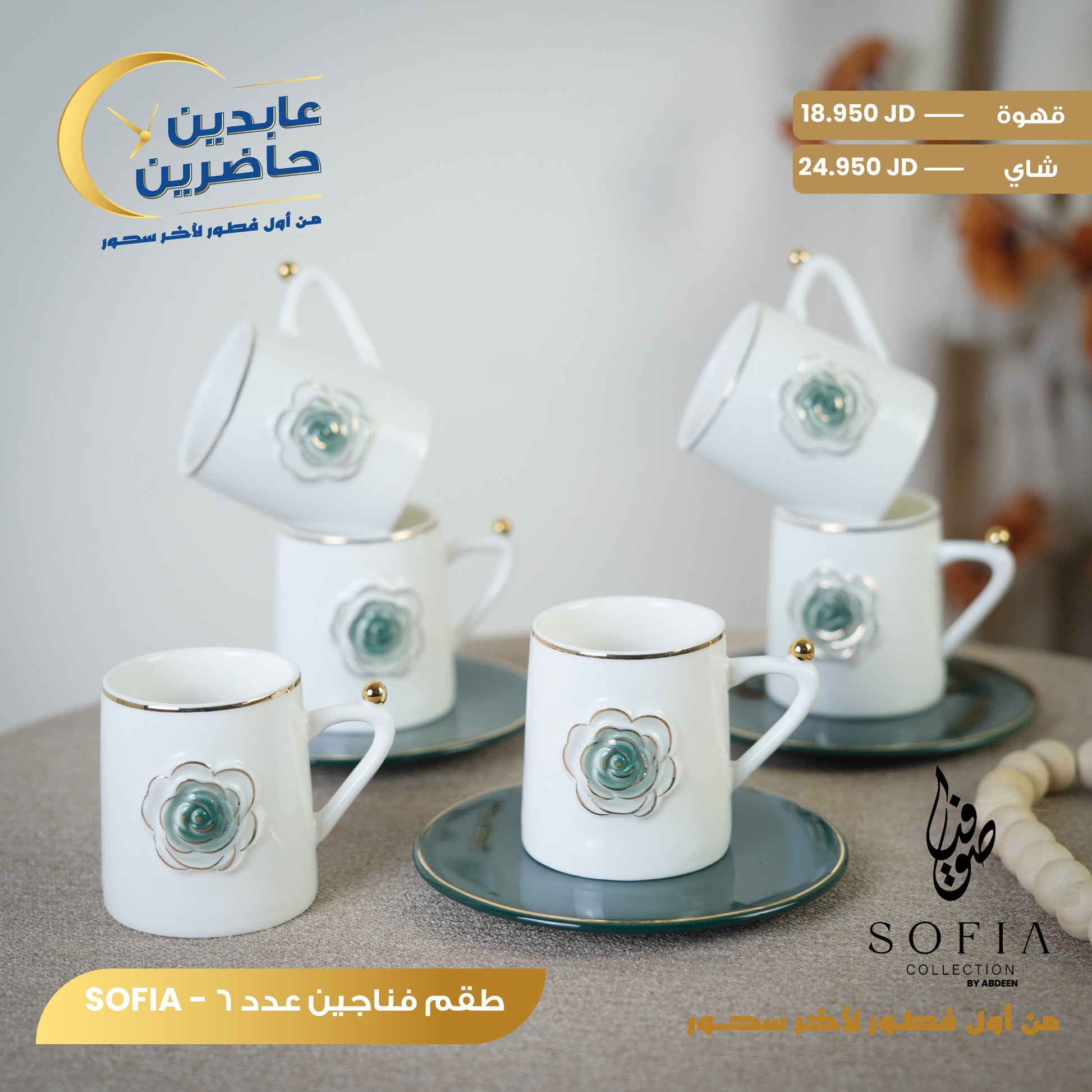 زيادة الكمية لـ طقم فناجين بورسلان SOFIA