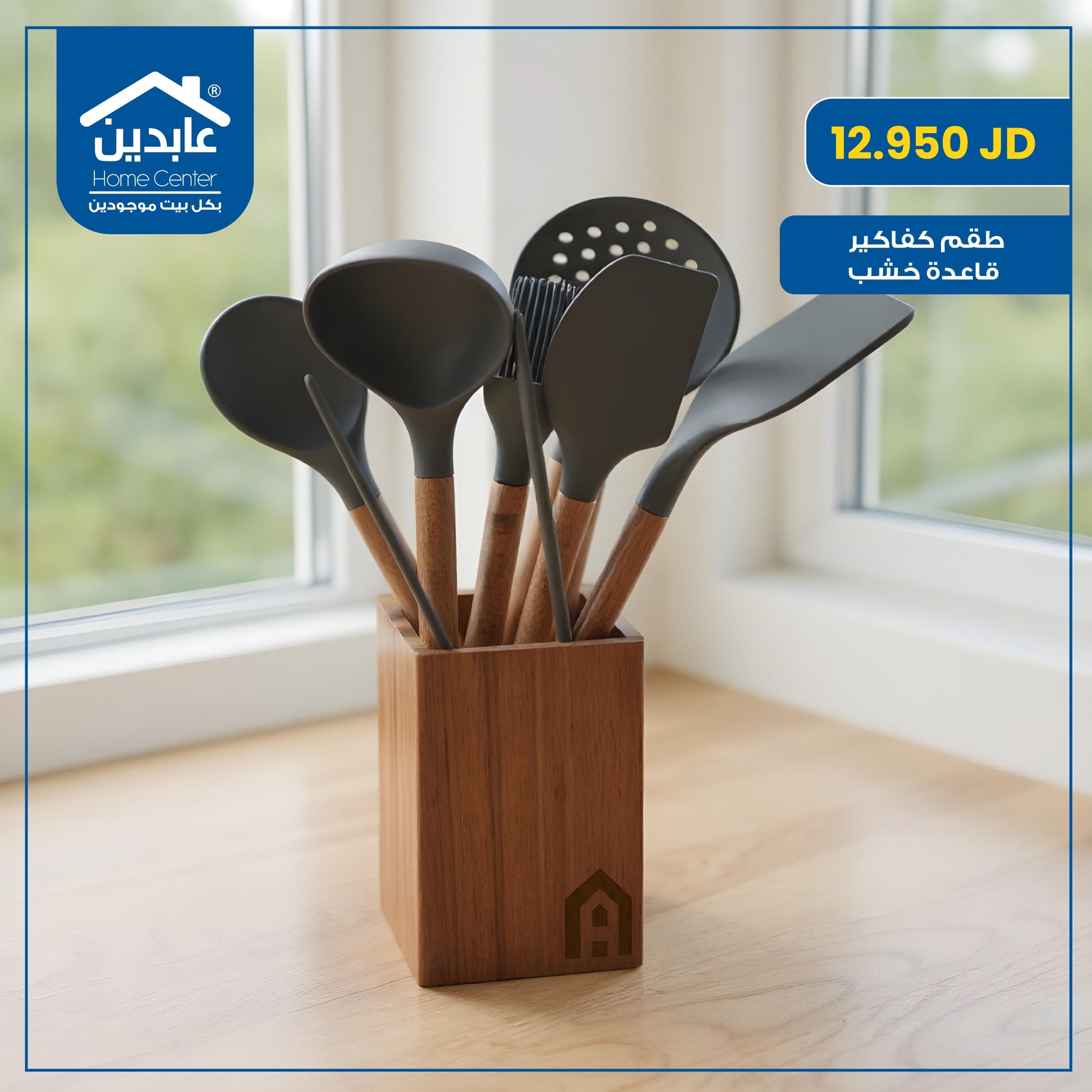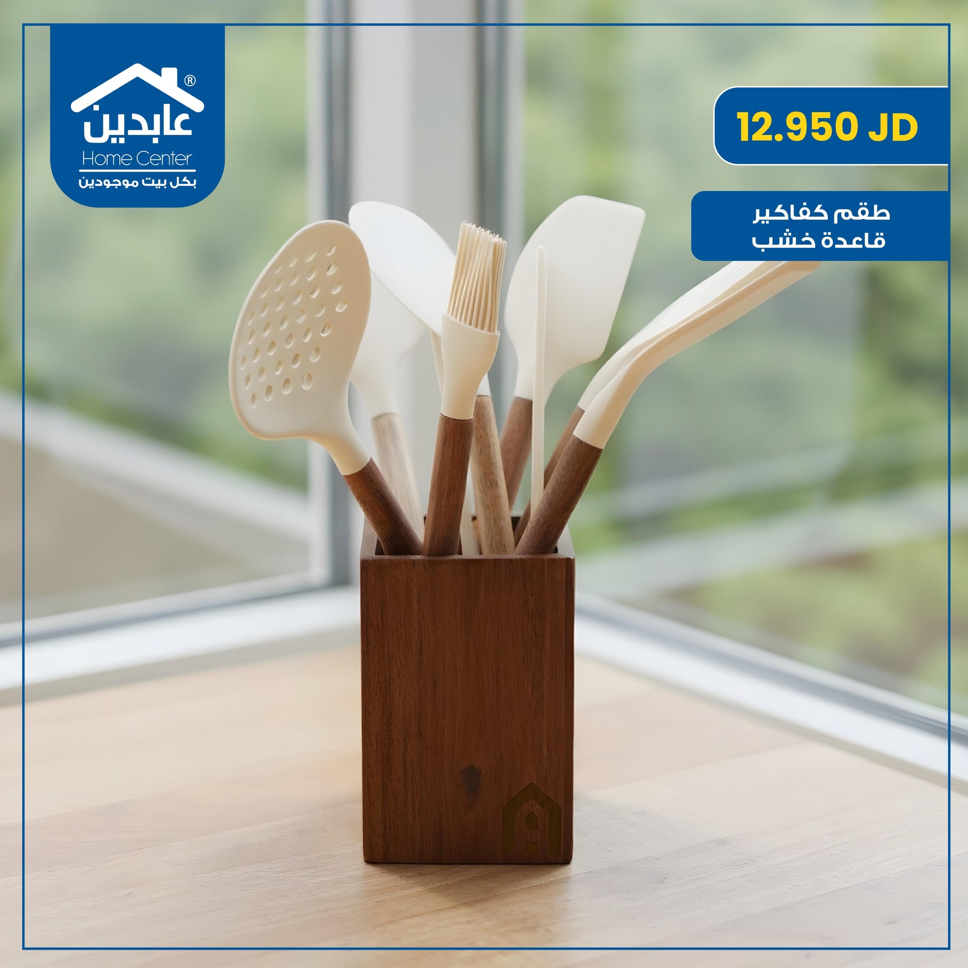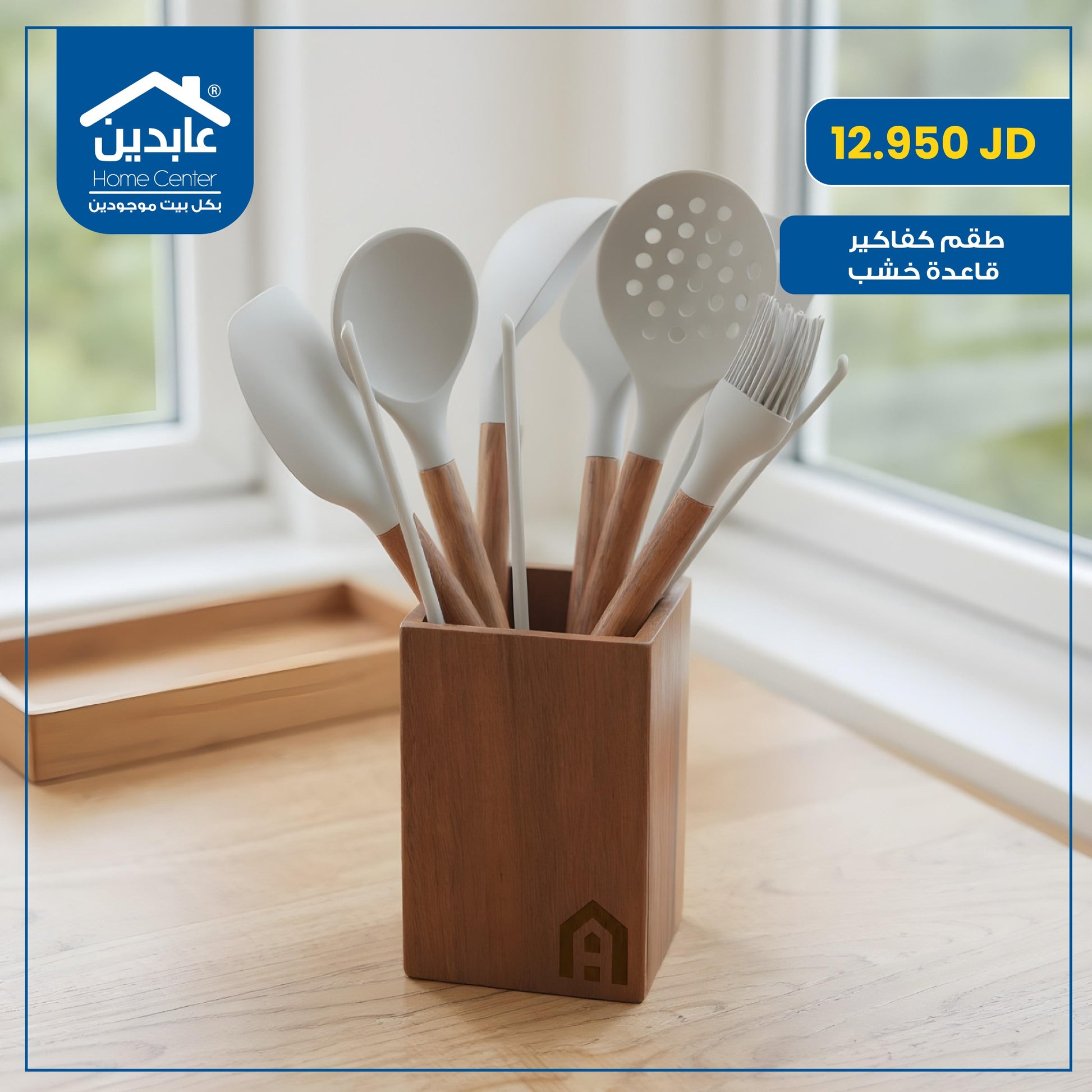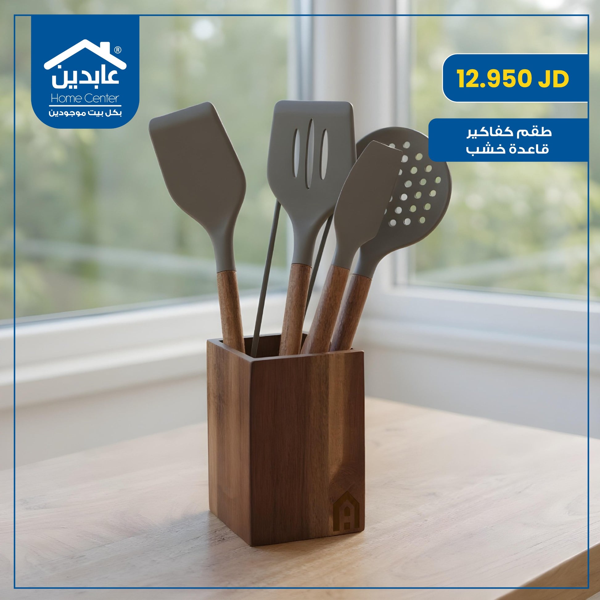 طقم كفاكير سيليكون بقاعدة خشب