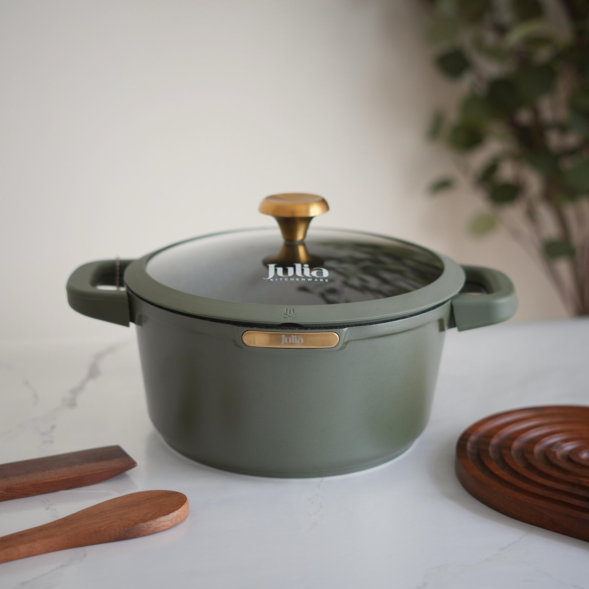 طنجرة جرانيت لون أخضر 20 سم أمنة وصحية بيد سيليكون قابلة للفك والتركيب ويمكن إدخالها للفرن JULIA